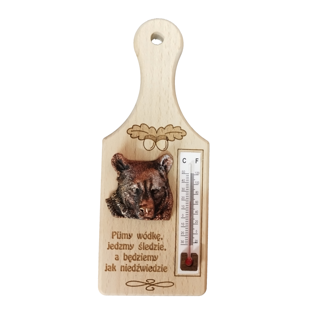 Tagi: deseczka niedźwiedź, z termometrem, termometr, niedźwiedź z żywicy, grawer, ornamenty góralskie, miś, niedźwiedź, dk133, pamiątka regionalna, upominki