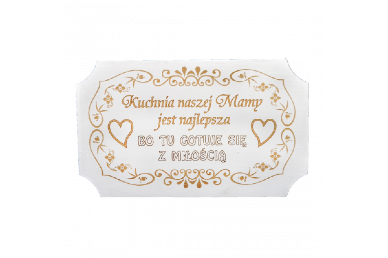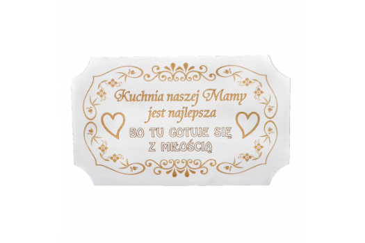 Wyraz uznania dla mamy oraz podkreślenie wartości miłości wkładanej w przygotowywanie posiłków. Może być wykorzystana jako ozdoba ścienna lub postawiona na półce w kuchni.