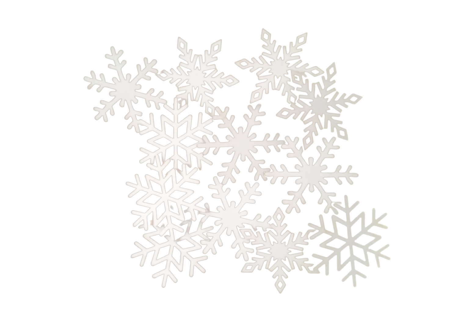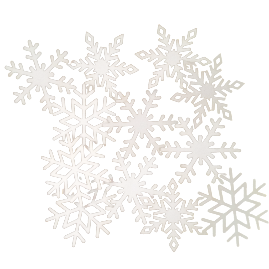 Ozdobne śnieżynki na firankę. Trzy rodzaje płatków śniegu po 4 sztuki z każdego rodzaju, w komplecie znajduje się 12 śnieżynek ozdobnych.