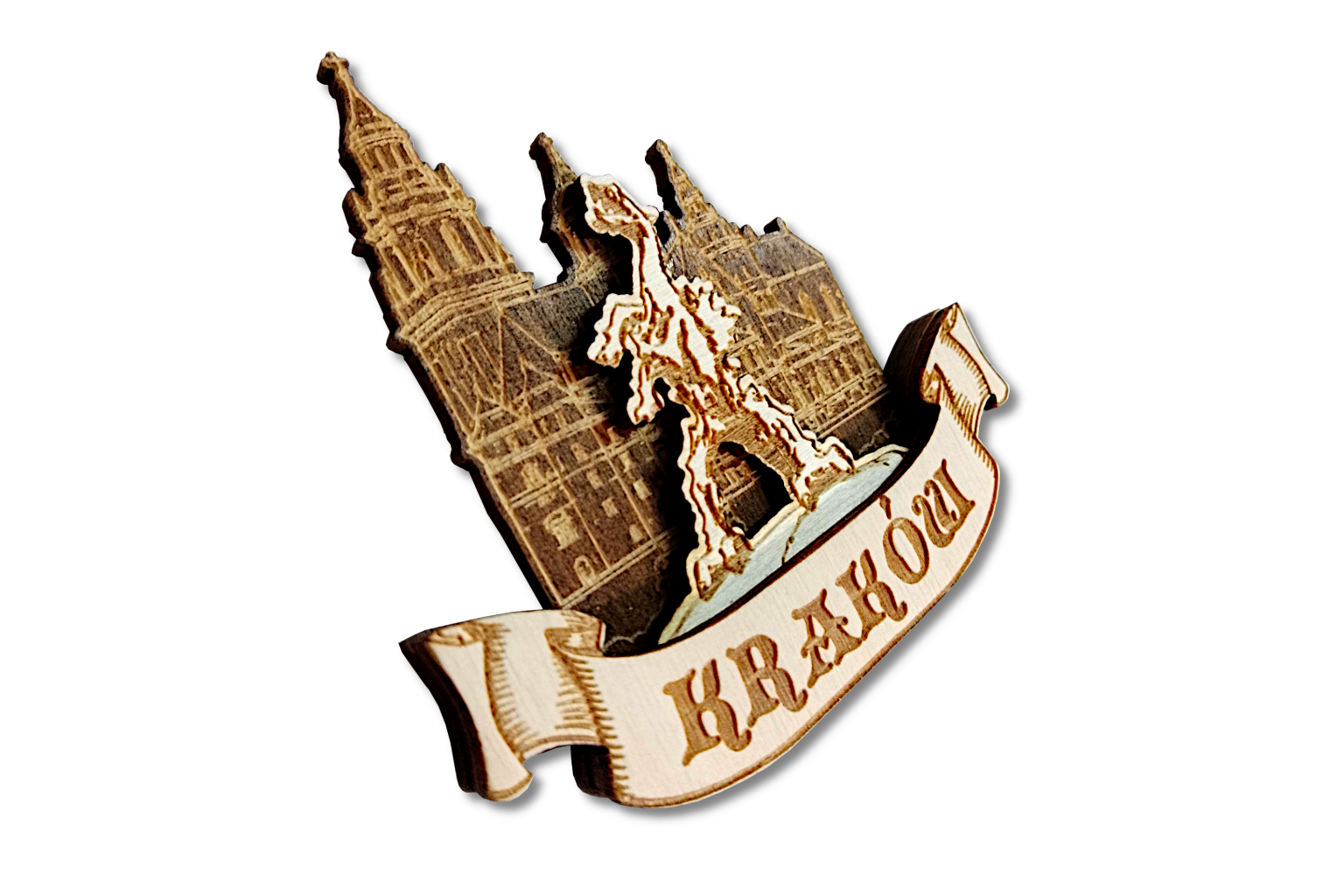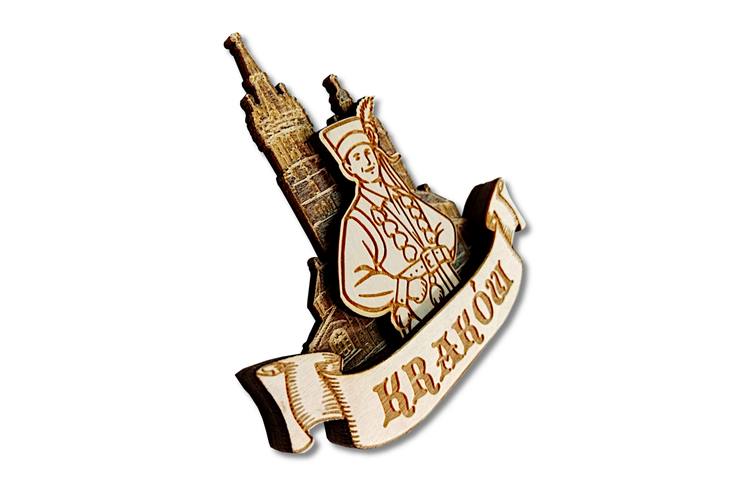 Odkryj wyjątkowe, drewniane magnesy 3D z grawerem inspirowanym tradycją Krakowa. Każdy egzemplarz to małe dzieło sztuki – precyzyjnie wycinany i wypalany w naturalnym drewnie, z dbałością o najmniejsze detale.
