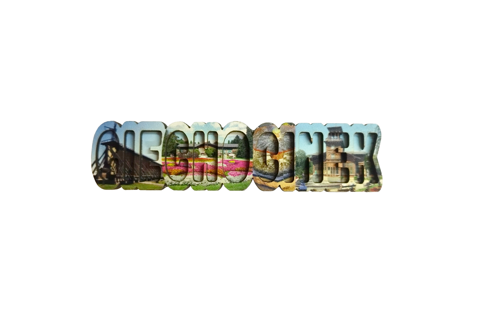 Wyjątkowy magnes na lodówkę w formie przestrzennego napisu z nazwą miejscowości, wypełnionego piękną panoramą miasta lub zdjęciami z okolic. To oryginalna pamiątka z podróży, która doda koloru każdej kuchni i przypomni o odwiedzonych zakątkach Polski.