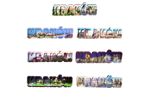 • Wzór: napis 3D z wypełnieniem graficznym (zdjęcia miasta w literach)
