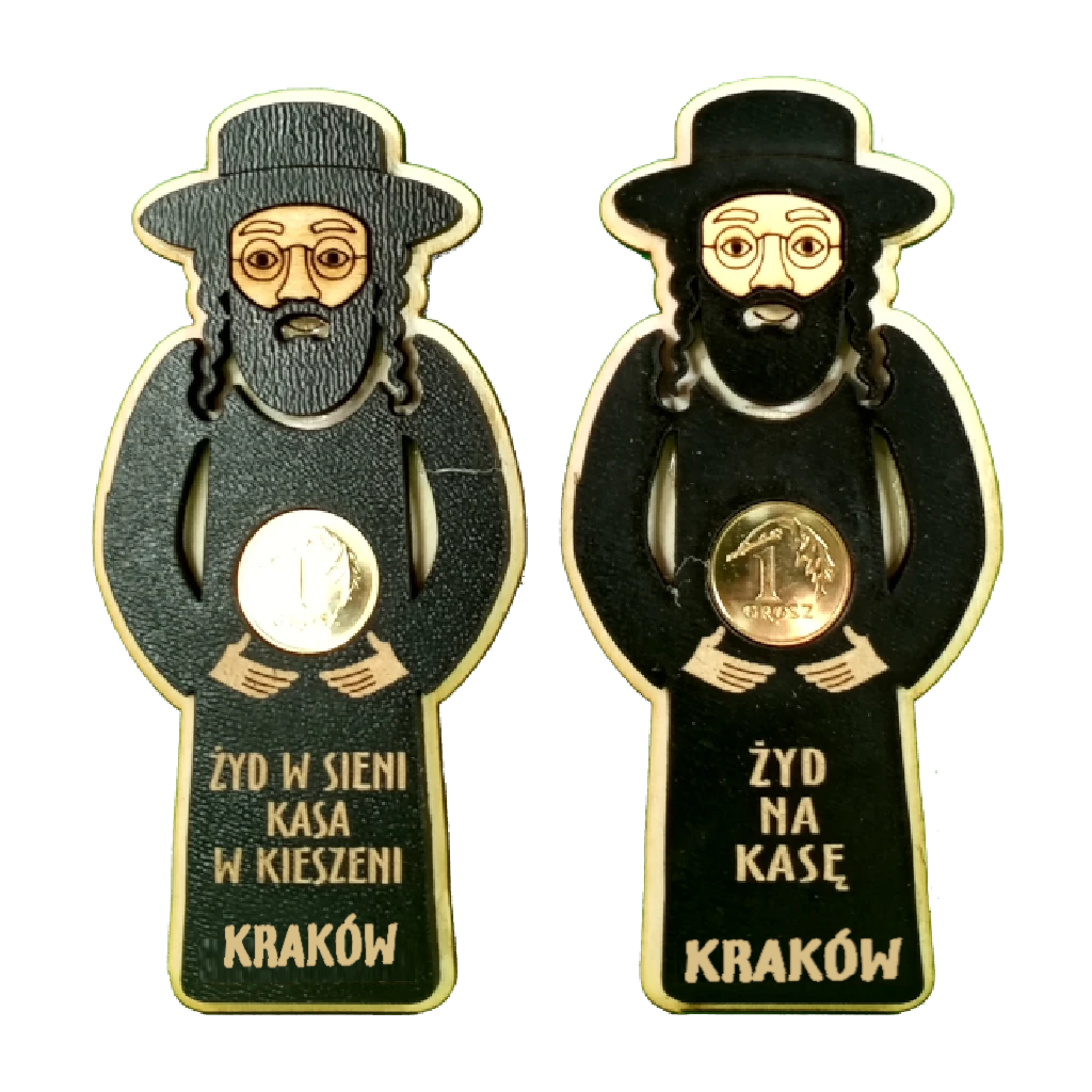 Tagi: magnes żyd, żyd na kase, magnes na kase, magnes na szczęście, magnes z groszem, pamiątka z groszem, magnes drewniany, magnes ze sklejki, szczawnica, bieszczady, zakopane, różne miejscowości, magnes drewniany, magnes regionalny, upominek z gór, zm002