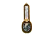 Obraz przedstawia dekoracyjny termometr ścienny, utrzymany w rustykalnym stylu, inspirowanym kulturą regionalną. Jego estetyka łączy funkcjonalność z elementami sztuki ludowej, co nadaje mu unikalny charakter.