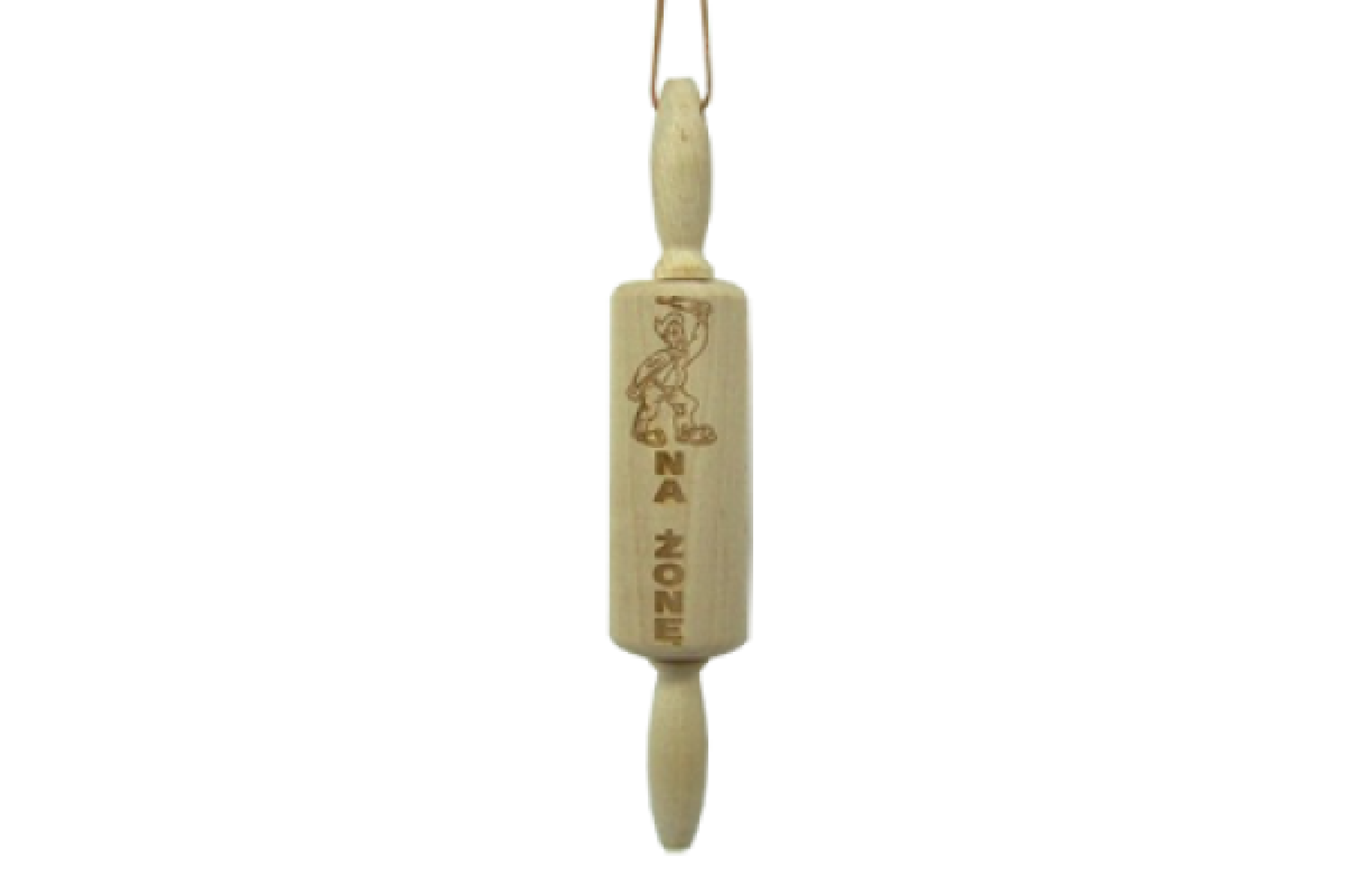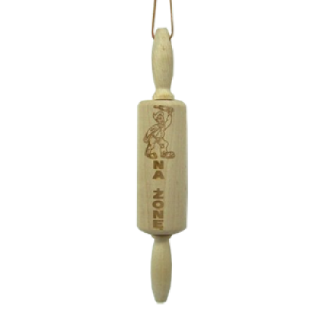Na centralnej części wałka znajduje się precyzyjny grawerunek z napisem „NA ŻONĘ”, który w humorystyczny sposób nawiązuje do żartobliwych stereotypów.