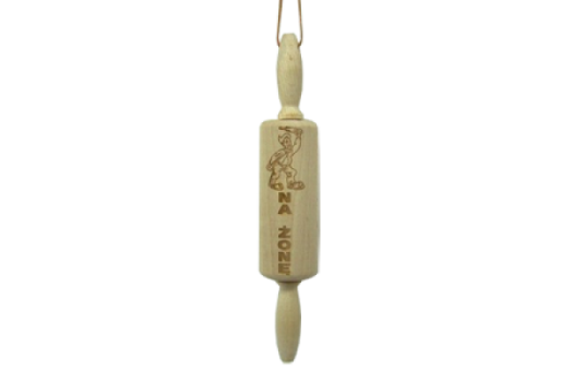 Na zdjęciu widoczny jest dekoracyjny wałek do ciasta o humorystycznym charakterze.