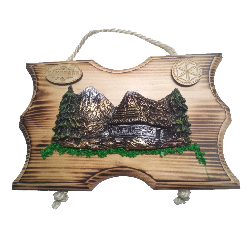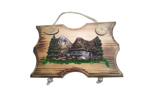 Tagi: widok żywica, na desce opalanej, deska opalana, góry, deska na sznurku, strumień, strumyk, góralska chata, góralski domek, żywica, zywica, sznur, sznurek, z102, pamiątki regionalne, upominek