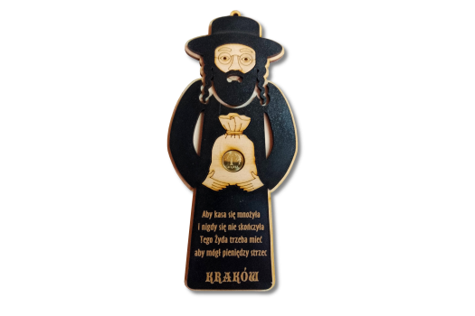 Tagi: żyd duży wiszący, żyd na kase, żyd z groszem, żyd ze sklejki, żyd na sznurku, żyd z workiem pieniędzy, żyd na szczęście, zyd wiszacy, żyd pamiątka, prezent na kase, zakopane, szczawnica, kraków, zd005